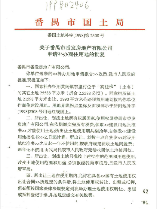现将番国土地补字[1998]第2308号公示如下,详见附件。